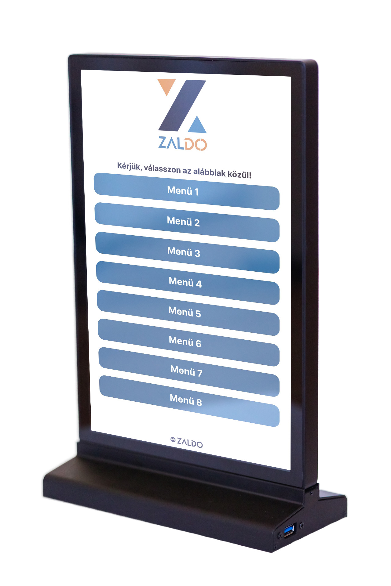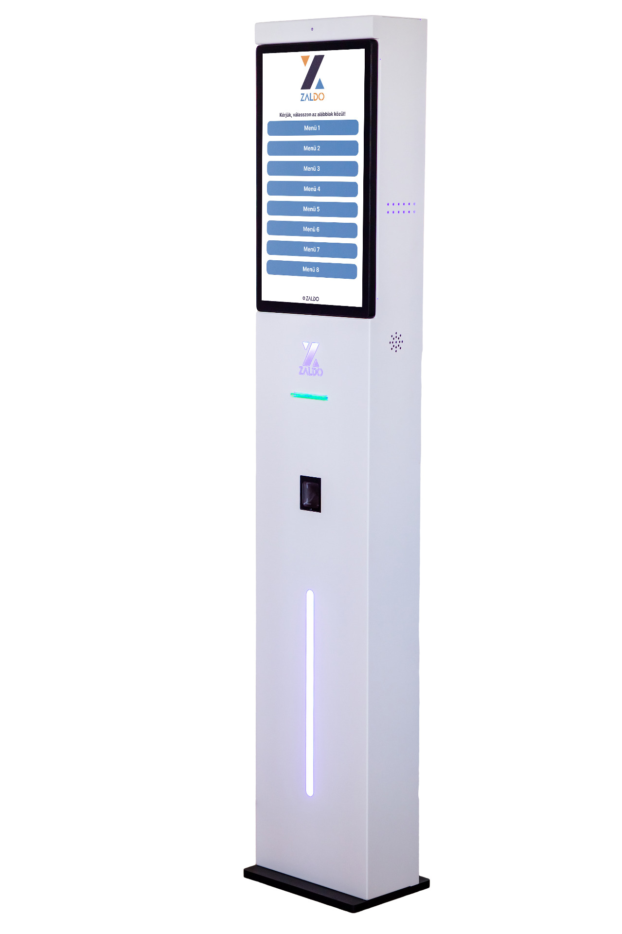 - Opciók: QR-kód olvasó, POS terminál, NFC olvasó, akadálymentes kiegészítők, hangszóró, személyhívó rendszer beépítése, PC-konfigurálása, egyedi színezés